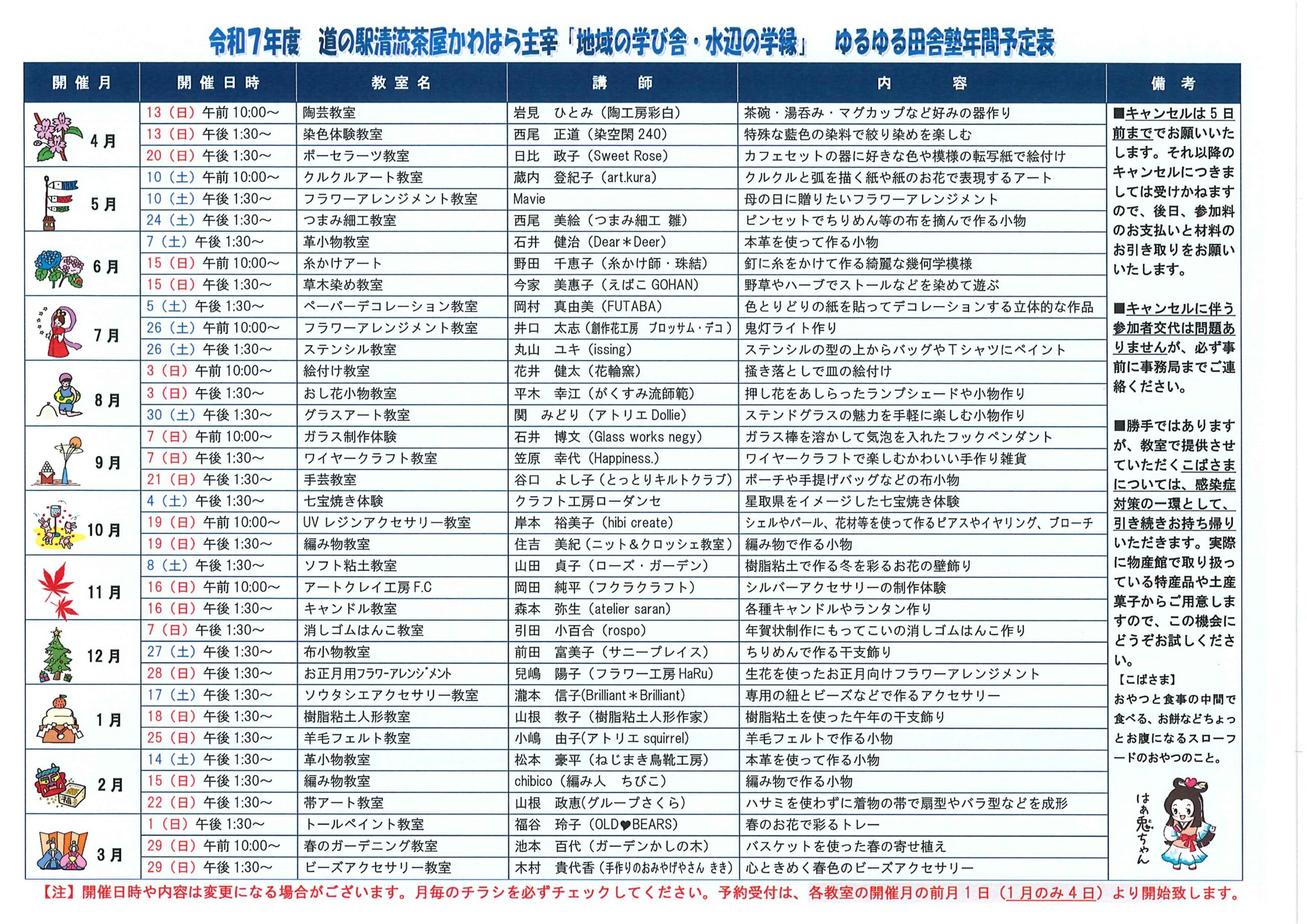 ゆるゆる田舎塾年間予定表(第17期・令和7年度)