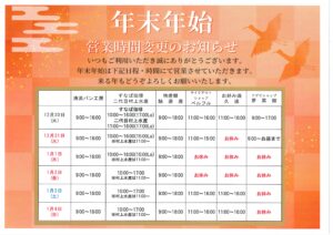 12月1日(月)~2月末まで以下店舗は冬季営業時間になります。
